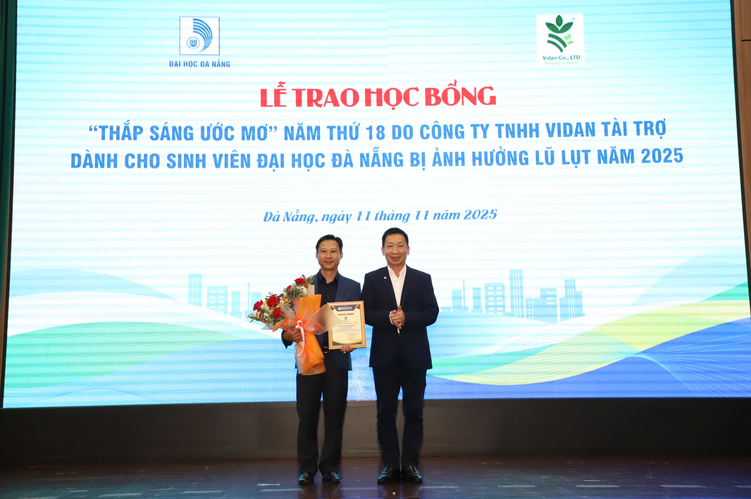 Suốt 18 năm qua, Công ty TNHH VIDAN đã xây dựng quỹ học bổng mang tên “Thắp sáng ước mơ” nhằm hỗ trợ học sinh, sinh viên hiếu học, đặc biệt ở những địa phương chịu thiên tai. Trong tháng 11/2025, chương trình đã trao 43 suất học bổng cho học sinh Trường THPT Nguyễn Thái Bình (xã Thăng An) và 100 suất cho sinh viên Đại học Đà Nẵng.