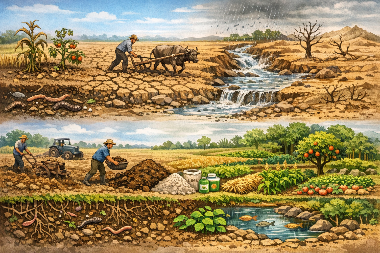 Cải tạo đất bạc màu là quá trình lâu dài, cần phối hợp nhiều biện pháp nhằm cải thiện cấu trúc đất, bổ sung dinh dưỡng và bảo vệ hệ sinh thái đất.