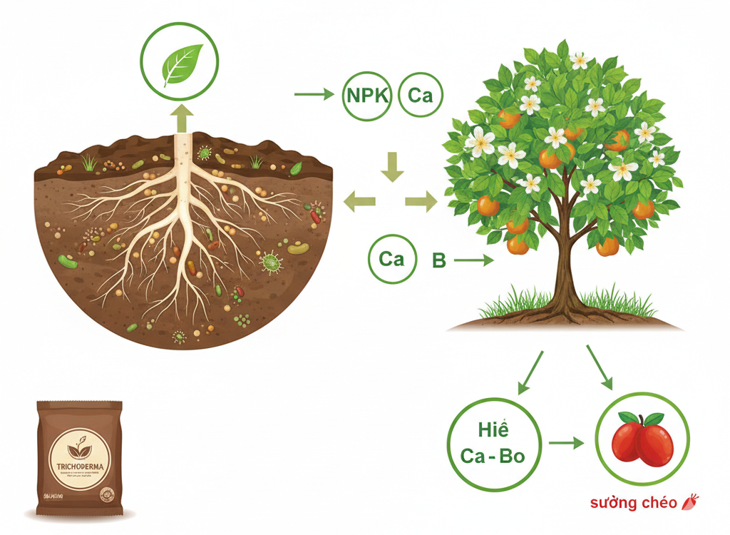 - Canxi: Làm thành tế bào chắc chắn → chống nứt trái, thối trái.
