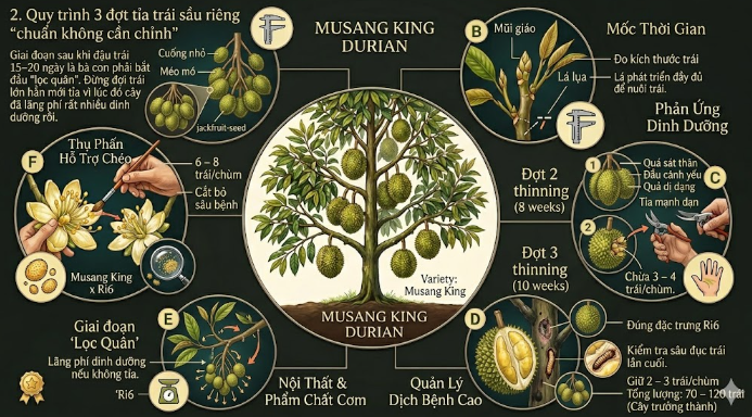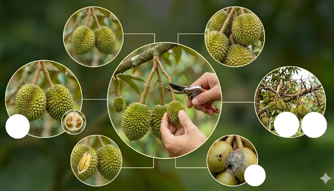 2. Quy trình 3 đợt tỉa trái sầu riêng “chuẩn không cần chỉnh”