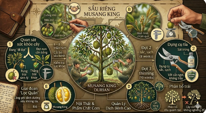 Ghi nhớ: Tỉa trái không phải là mất đi sản lượng, mà là gom dinh dưỡng để tạo ra những trái “loại 1” đắt giá.