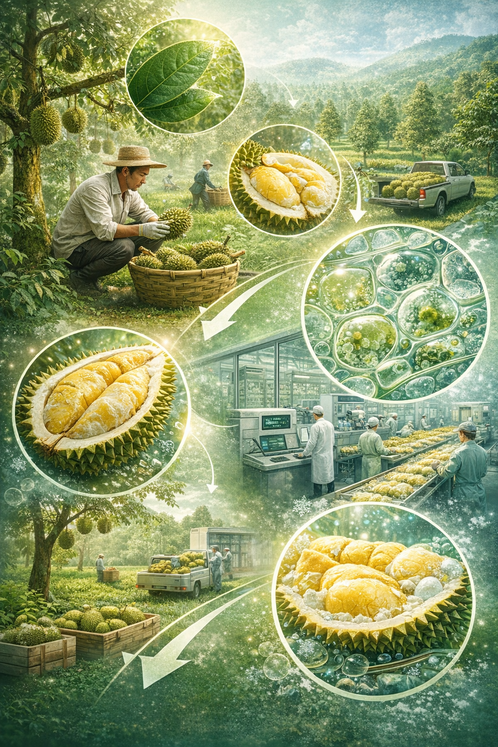 Sầu riêng hiện là một trong những cây ăn quả nhiệt đới có giá trị kinh tế cao nhất. Trong đó, Musang King – giống sầu riêng nổi tiếng có nguồn gốc từ Malaysia – được mệnh danh là “vua của các loại sầu riêng” nhờ cơm vàng nghệ, dẻo mịn, béo đậm và mùi thơm sâu đặc trưng.
