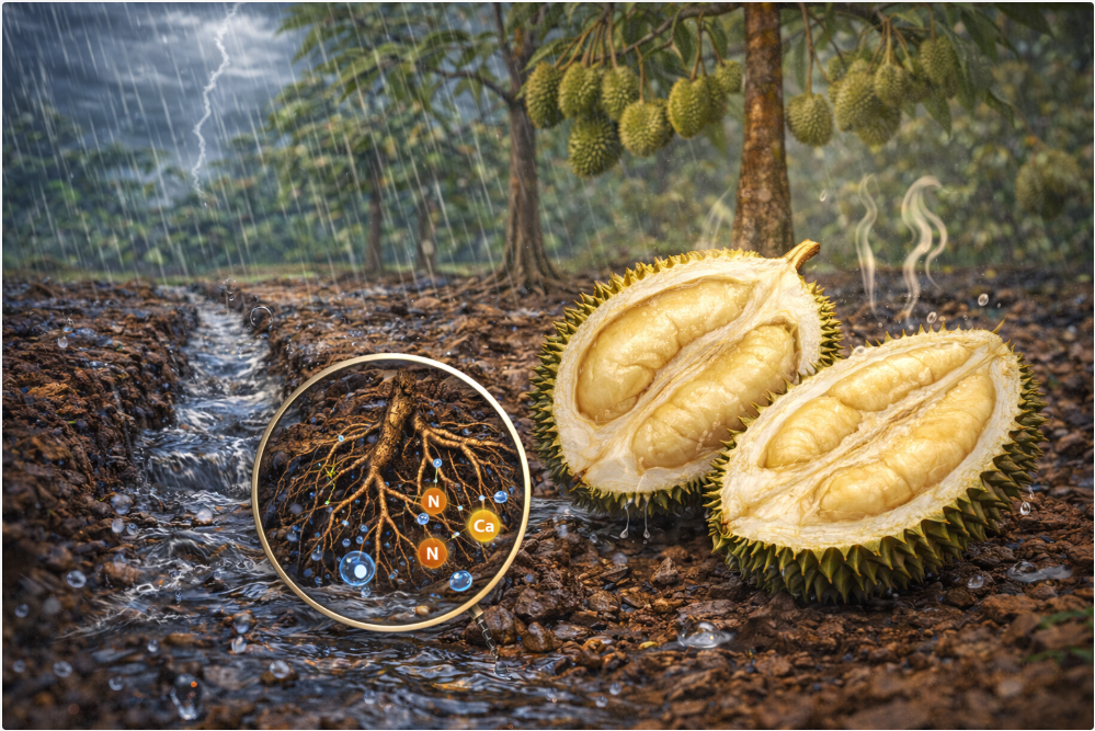 Khi đất quá ẩm kéo dài, rễ hút nước nhiều, nhưng môi trường yếm khí khiến rễ hấp thu dinh dưỡng kém. Trái vì vậy rơi vào tình trạng “đầy nước nhưng thiếu chất khô”, dẫn đến cơm nhạt, nhão, sượng hoặc phát triển không đều. Đặc biệt ở những vườn đất thịt nặng, liếp thấp, thoát nước kém, nguy cơ càng cao.