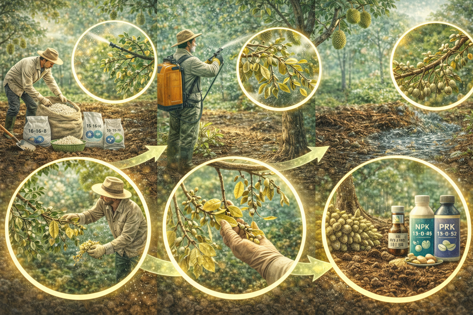 Cần canh chỉnh phân bón gốc sớm để cây có nguồn dự trữ ổn định. Mục tiêu là làm sao để lượng phân dư thừa trong đất và nhựa cây ở mức thấp nhất, giúp nhịp sinh trưởng của cây chậm lại, dễ tác động hóa chất tạo mầm.