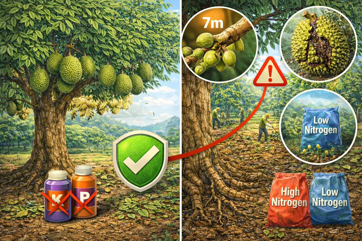 - Tránh Axit cao: Nếu trong vườn vẫn còn trái vụ trước, tránh dùng các dòng Lân có tính acid cao vì dễ làm vỏ trái bị xanh đen, xồ vỏ.