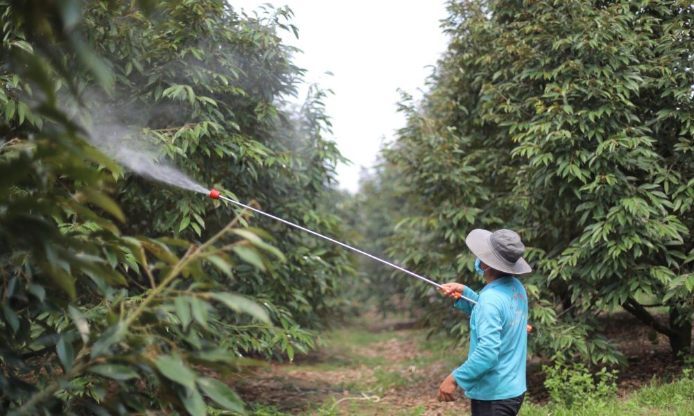 Làm sầu riêng nghịch vụ luôn là thử thách lớn, nhất là khi áp lực mưa kéo dài khiến cây khó già lá và dễ đi đọt. Thay vì phun tạo mầm toàn cây theo cách truyền thống, kỹ thuật phun tạo mầm theo tầng đang trở thành “cứu cánh” cho nhà vườn. Phương pháp này không chỉ giúp tiết kiệm chi phí mà còn giúp quản lý hoa, trái nằm gọn trong tầm kiểm soát.