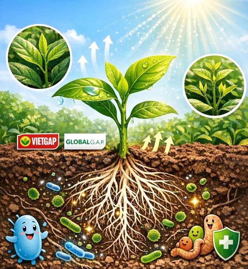 • Tăng cường hệ vi sinh vật: Chiết xuất kelp kích thích hoạt động của vi sinh vật có lợi trong đất, giúp cải thiện chu trình dinh dưỡng và nâng cao độ phì nhiêu.
