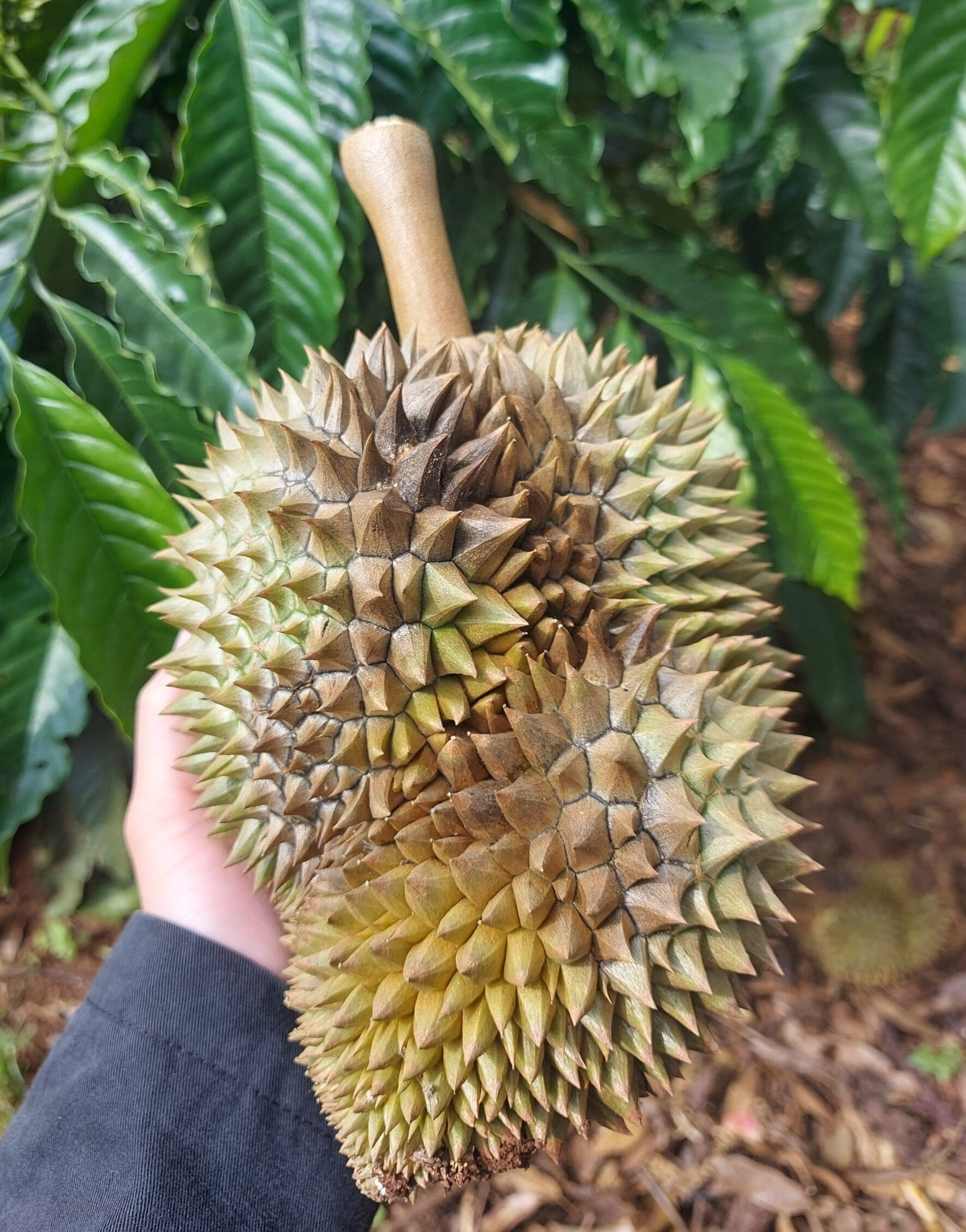 - Ngửi mùi: Sầu riêng chín tự nhiên sẽ thơm nhẹ; nếu cuống hoặc khe múi có mùi chua hoặc hôi, đừng mua.
