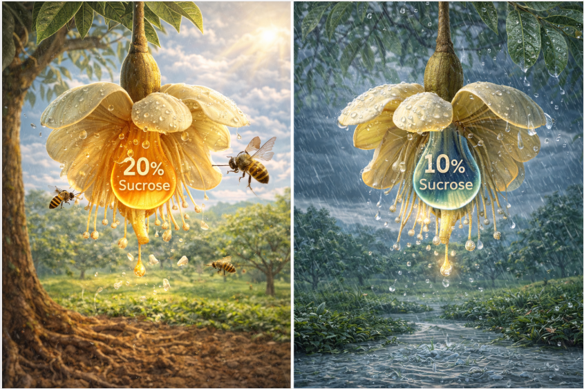 Nồng độ lý tưởng: Để hạt phấn có thể nảy mầm và chui vào bầu nhụy, nồng độ đường (Sucrose) trên đầu nhụy phải đạt từ 20% – 35%. Đây giống như một “nguồn pin” nạp năng lượng cho hạt phấn.