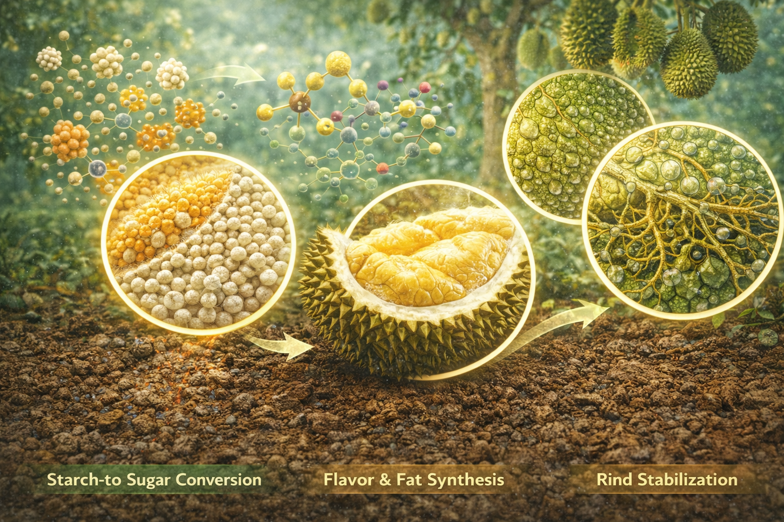 Đối với các giống sầu riêng cao cấp như Musang King, sự ổn định sinh lý này cực kỳ quan trọng. Chỉ một sai lệch nhỏ trong chế độ dinh dưỡng cũng có thể khiến cơm bị sượng, lạt hoặc mất đi mùi vị đặc trưng, làm giảm giá trị hàng triệu đồng mỗi cây.