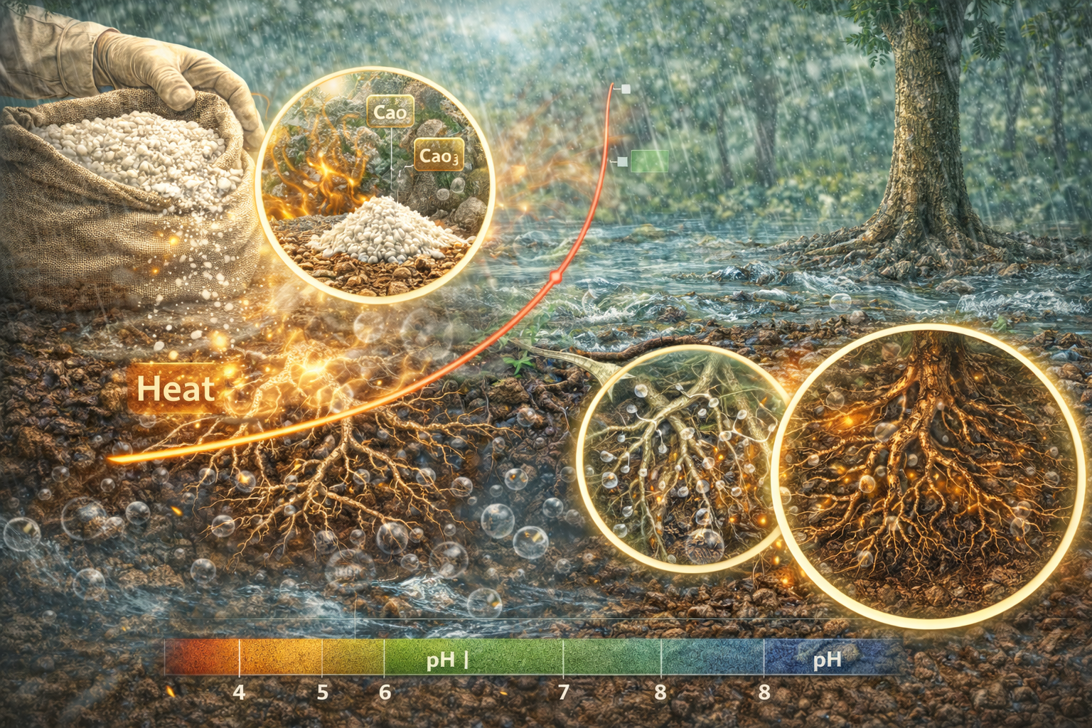 1. Bón vôi mùa mưa: Nguy cơ tăng pH đột ngột và gây sốc rễ